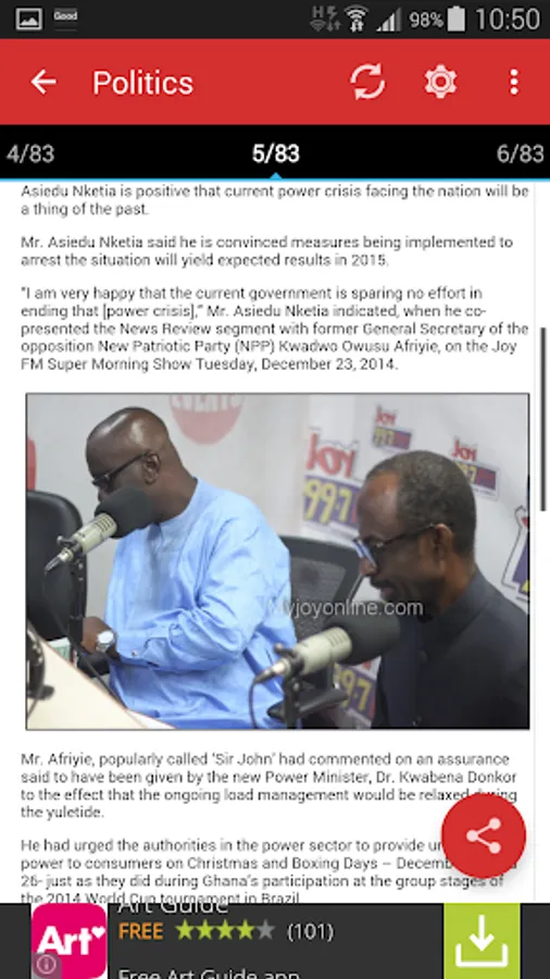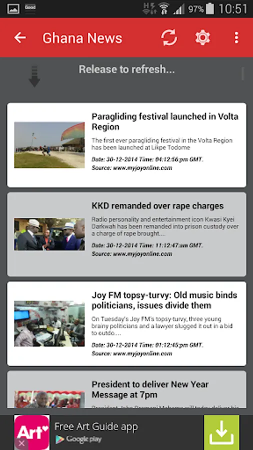 This is simply the best Ghana News app on Play Store. This app (previously called Joy FM Ghana) provides all the latest news & videos published by the leading news providers in Ghana. These news providers are: