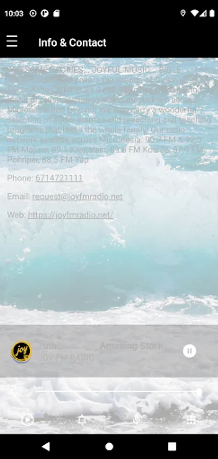 AWESOME STORIES, JOYFUL MUSIC, BIBLE TRUTH... JOY FM covers the islands of Guam at 91.9 FM and the CNMI at 89.9 FM. We offer an inspiring blend of music including inspiring A Capella and island music from across Micronesia and beyond! We also carry a wonderful selection of audio dramas and preaching and teaching programs that bless the whole family! Our radio network extends across Micronesia. 90.7 FM & 92.3 FM Majuro, 89.1 Kwajalein, 89.5 FM Kosrae, 87.9 FM Pohnpei, 88.5 FM Yap (Coming Soon)
