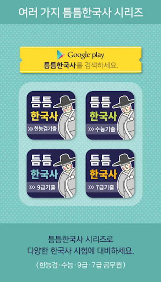지금까지 볼 수 없었던 정말 제대로된 한국사공부앱이니 일단 믿고 받아보세요!