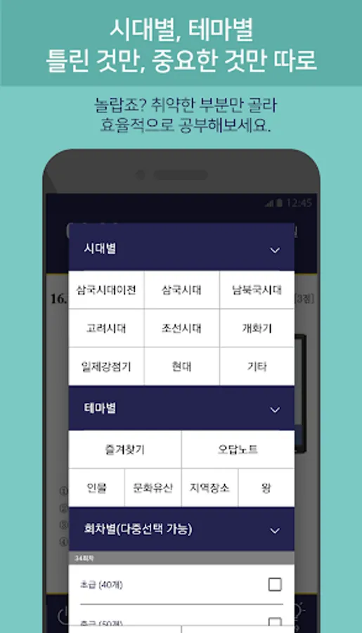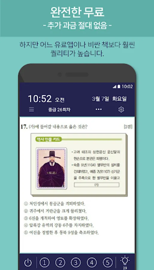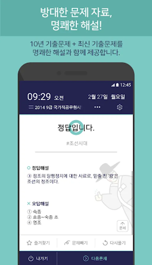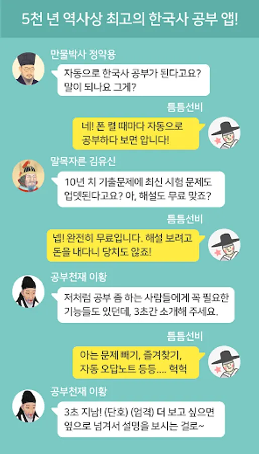 You can see the previous questions about Korean history automatically just by turning on your phone. If solving a problem is cumbersome, read it through and feel free to make any mistakes. It is a great help if you read the clear explanation and read it only once.