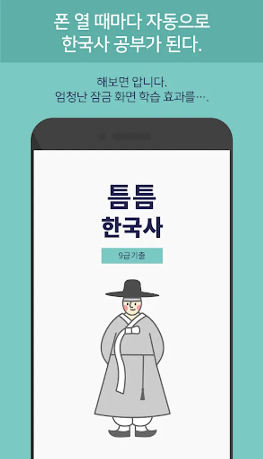 What if I automatically study Korean history for the 9th grade civil service exam every time I turn on my phone?
