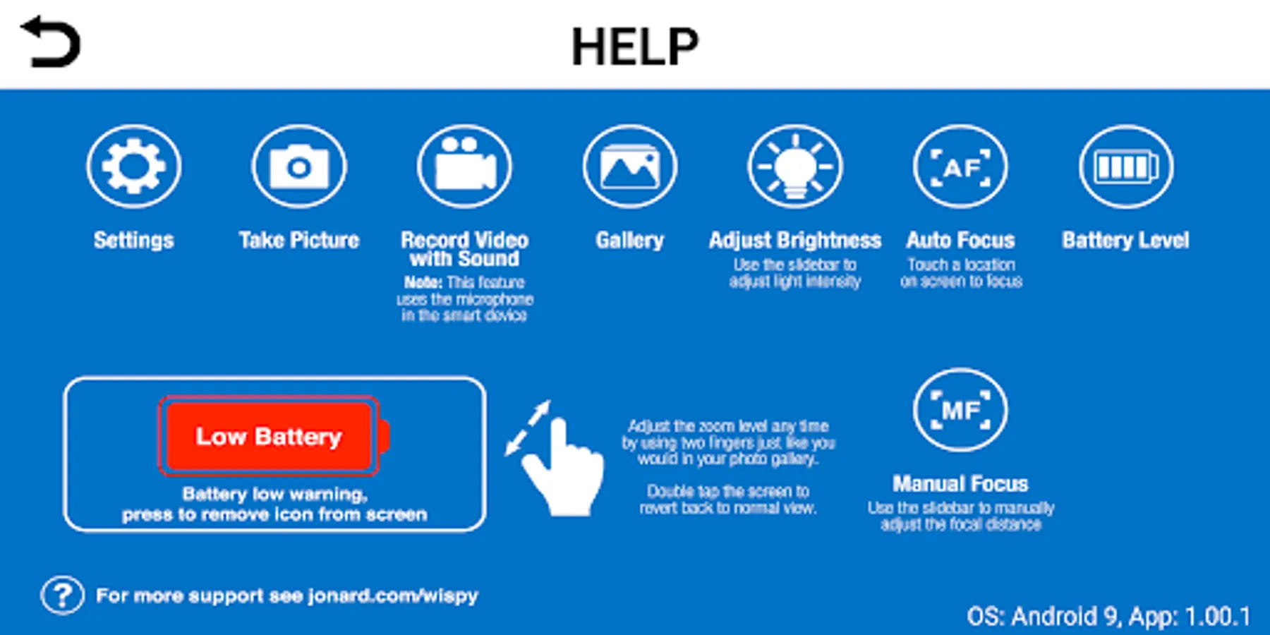 A Wispy inspection camera is required when using this app. For more info/to purchase visit jonard.com/wispy