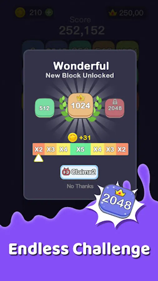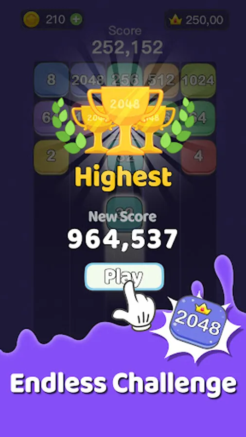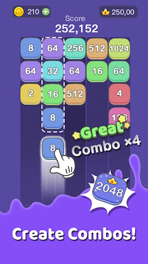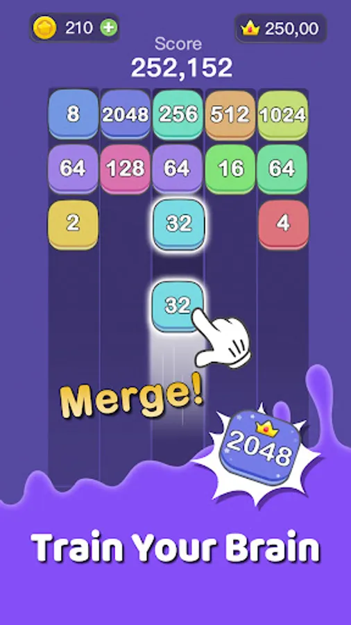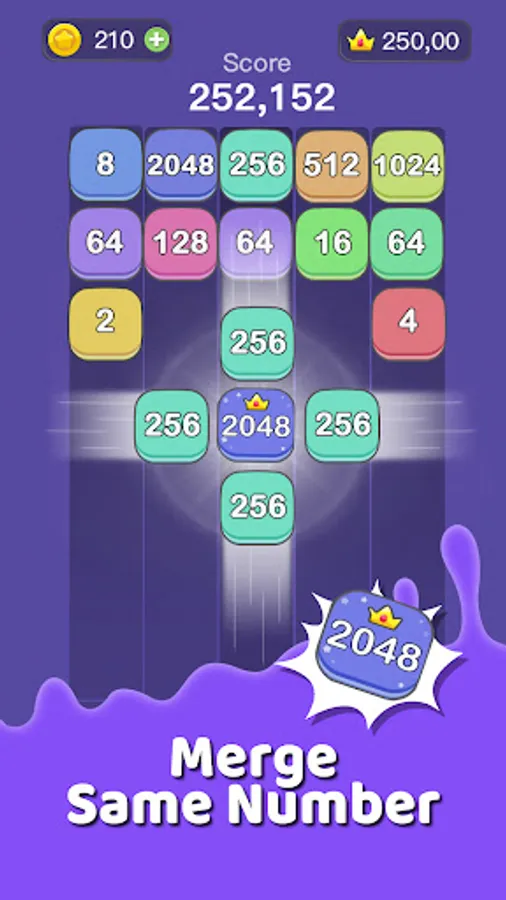 The goal is to tap, shoot and merge the numbers to match and merge the highest number cube blocks you can. It is more challenging after you merge to the large number blocks, e.g. 2048 -> 8192-> 4K -> 16K ->512K ->2048K and so on till Infinity ∞.
