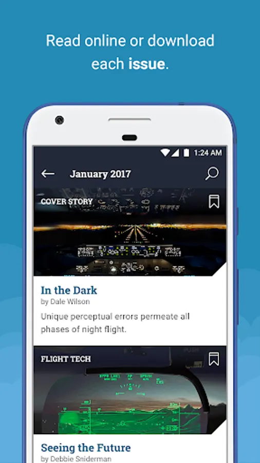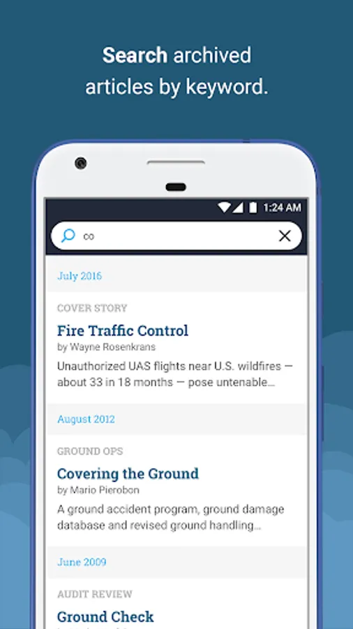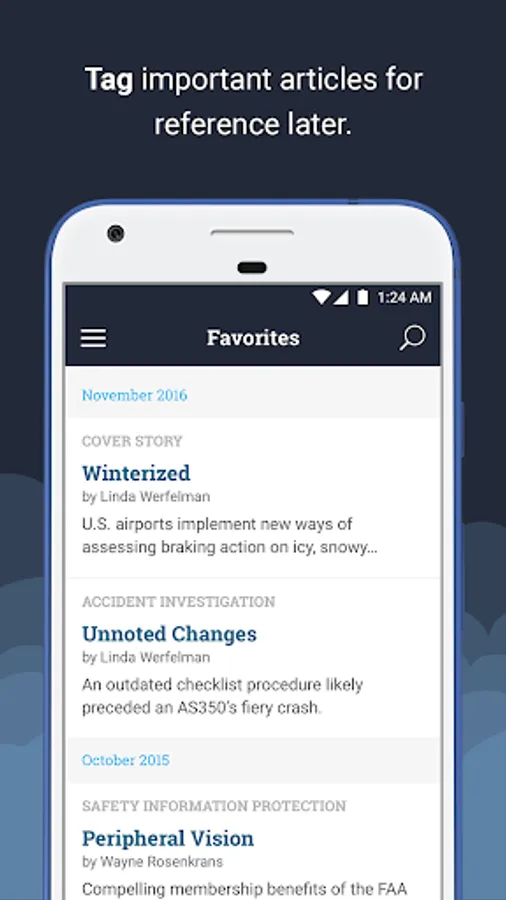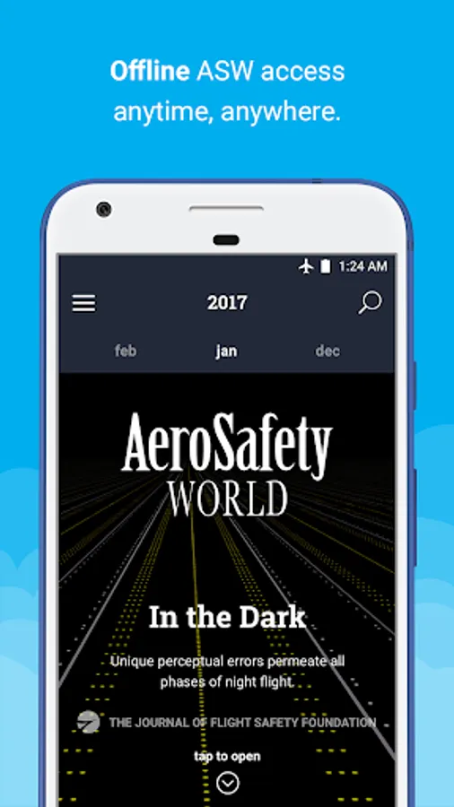 The AeroSafety World app enables you to carry the AeroSafety World archive anywhere you can take your mobile device. Once the app and content initially are downloaded, AeroSafety World is accessible anywhere, at any time and without an internet connection, and you will be able to: