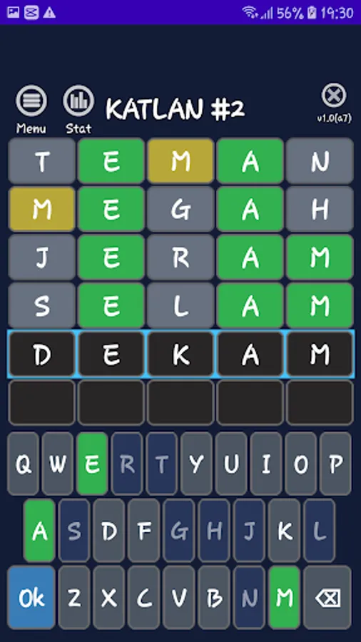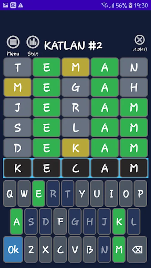 Katlan is a secret word guessing game in Indonesian, in this game you have to guess a word consisting of only 5 letters on 6 occasions without any help or instructions.