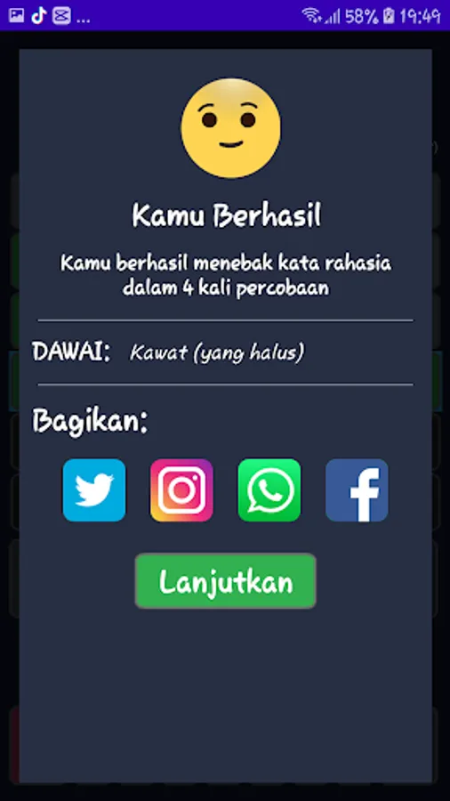 In this Katlan guessing game, you can show off your prowess on social media such as twitter, instagram, whatsapp, and others. Let's play this Katlan word guessing game with your friends