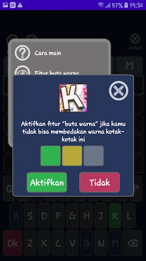 This very small and light offline game has a color blind feature, this feature is specifically made so that players who have difficulty distinguishing green and yellow colors can participate in playing this fun word game.