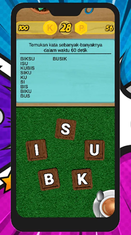 In the Word Collection game that can be played offline there is also a bonus round. In this bonus round you have to find as many words as possible from the letters given in a limited time, only 60 seconds. Of course this will add exciting value in the game that you can get for free