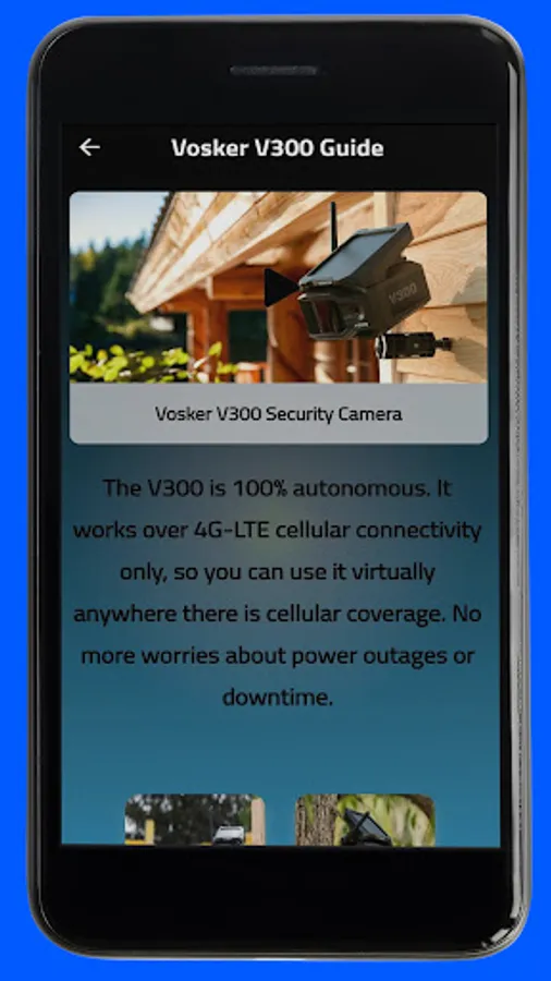 The Vosker V300 comes equipped with a pre-installed SIM card and works with major cellular networks, including AT&T, Verizon, and T-Mobile. Users can access the camera's images and videos through the Vosker app, which is available for Android devices.
