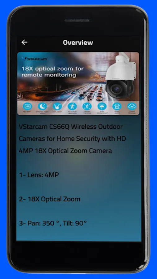 • 【18X Optical Security Camera Zoom & 4MP Resolution】 vstarcam camera with 350° pan and 90° tilt for covering 360° of view without any dead zone. Featuring 4MP full-HD resolution, The vstarcam camera with Never need to worry about any fuzzy image when zooming thanks to its intelligent AI autofocus function and larger view.