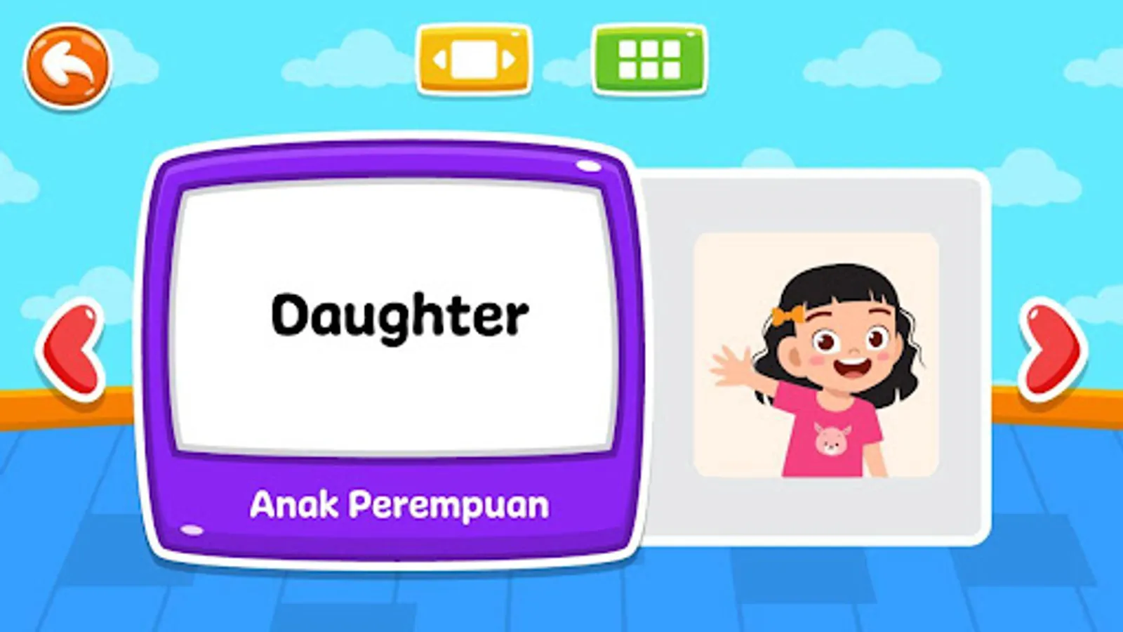 The KUMA - Learn and Play application provides various types of vocabulary that are often encountered by children in everyday life, making it easier to remember the names of objects and the language used daily.