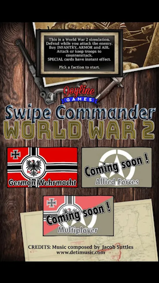 NO advertising, because we don't want to spoil the war atmosphere. NO in-app card pack purchases, because we want everyone to enjoy the game to the max without paying extra. The game is free to play single player on axis (German) side. Become premium to play with other factions and enjoy multiplayer with friends and people around the world. Premium is only the price of a fresh pint. I'll be happy to keep working hard to improve the game, adding new features, factions, historical pictures in colour, cards, sounds,... to feed your passion for World War 2. Thank you for your support !