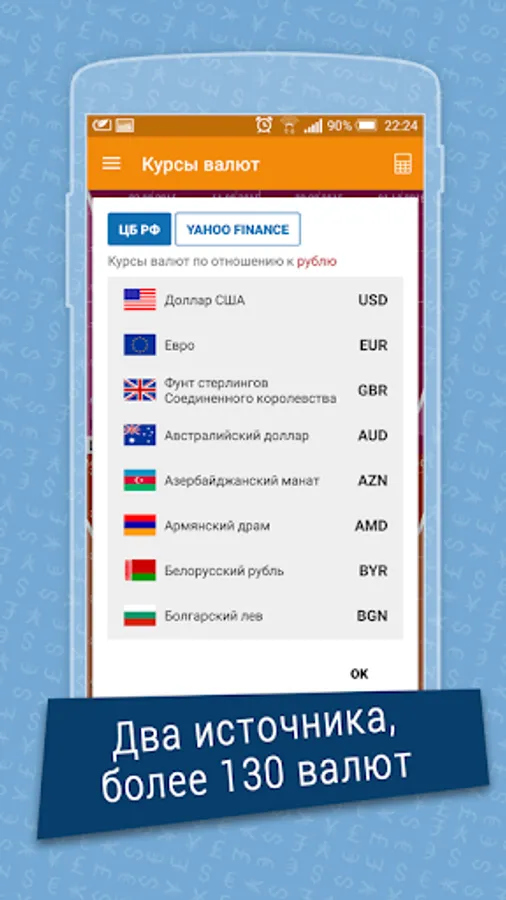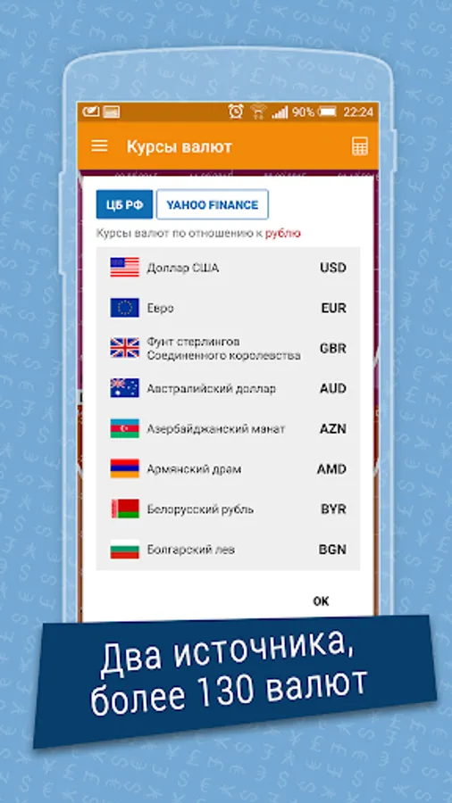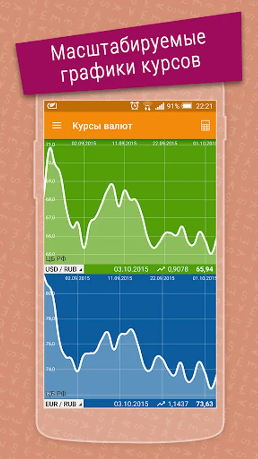 The app "Exchange Rates. Charts" - a topical courses 130+ world currencies on your phone. Customizable charts to assess changes in exchange rates for different time periods. Currency calculator for any currency pair and the value of precious metals.