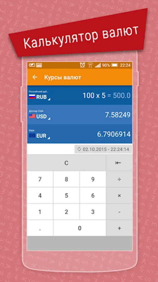 • Currency calculator, simultaneous conversion of two currency pairs;