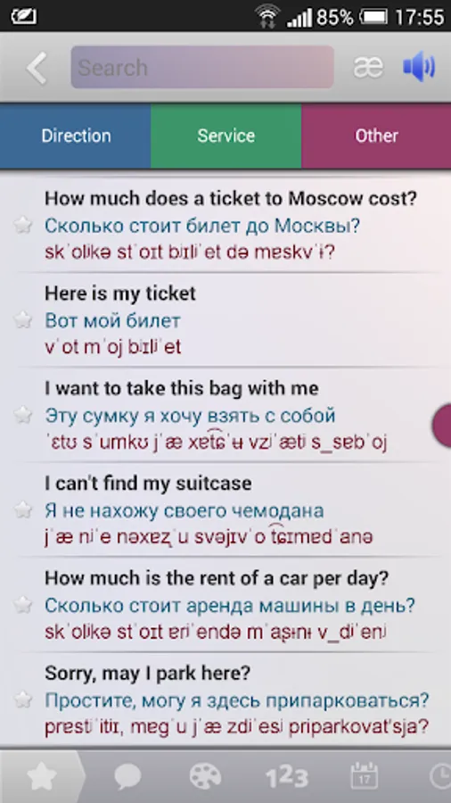 This app is made for those who are either familiar with Russian language or not. "Phrasebook" will help you to learn Russian language and simplify the communication during vacation or business trips with more than 2,500 thoroughly picked phrases and collocations grouped in thematic categories.