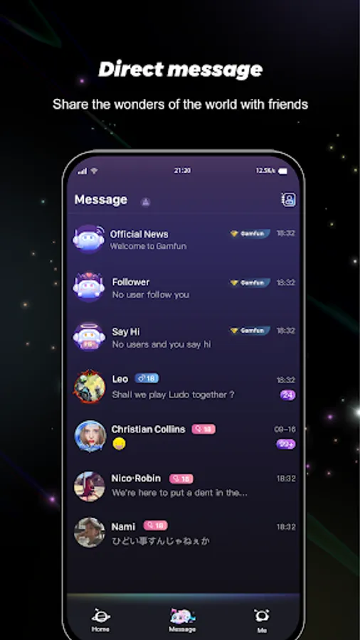 Gamfun is a chatting and entertainment community app, with Gamfun you can meet new friends, create your own chatroom and chat with people from all over the world.