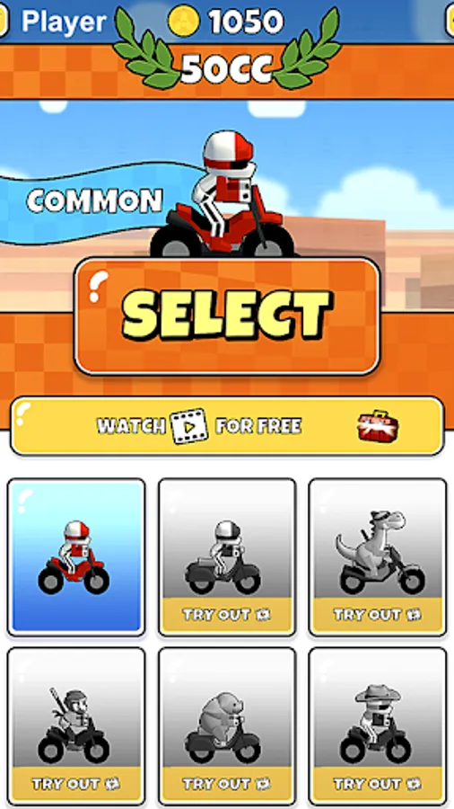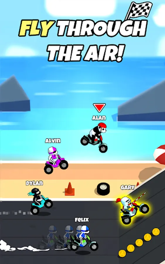 Unlock more than 40 different bikes as you compete in the many different tournaments. Upgrade and choose the coolest character and best bling for your ride.
