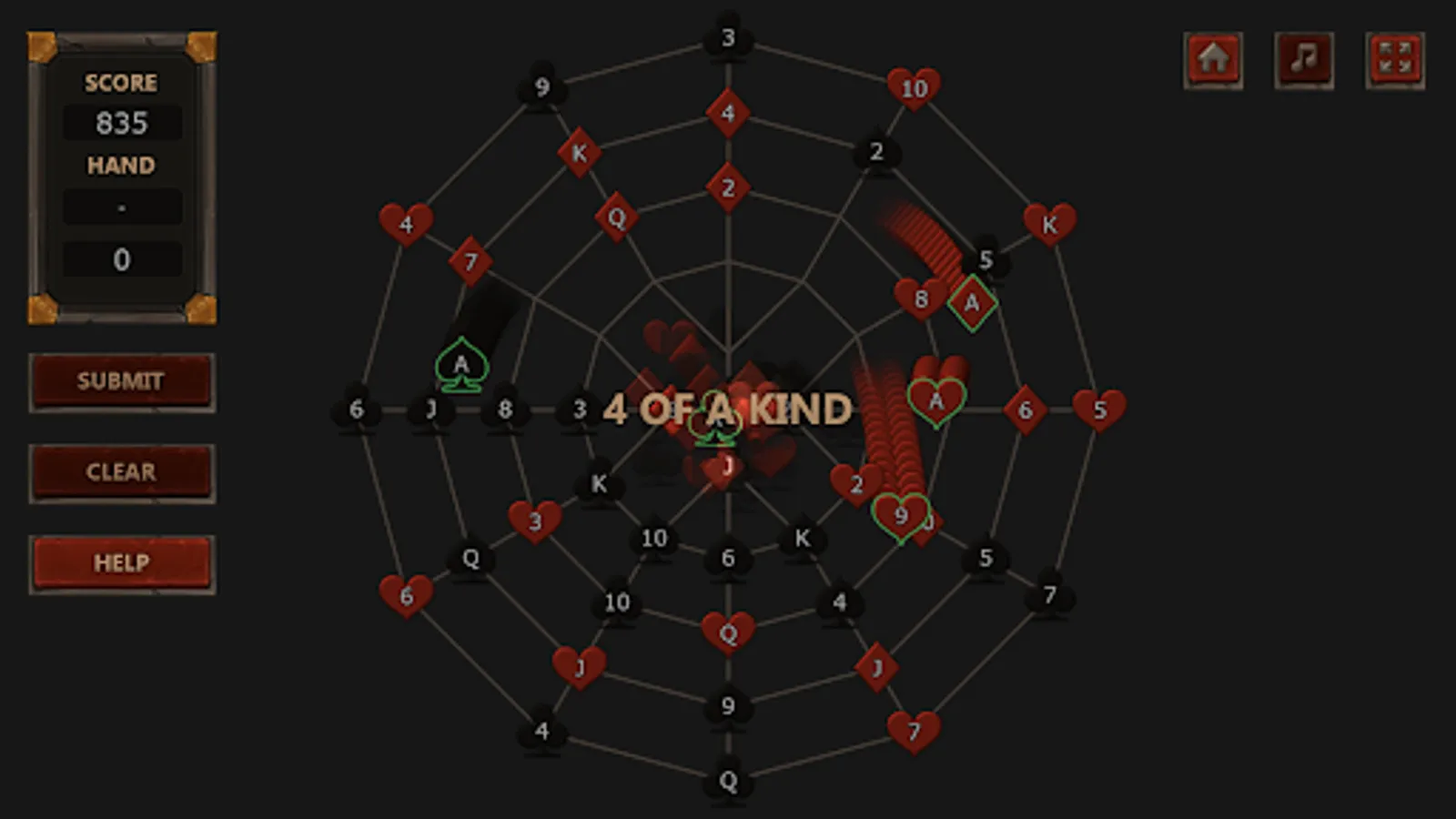 Create poker hands from the cards in the web of this strategic solitaire game.