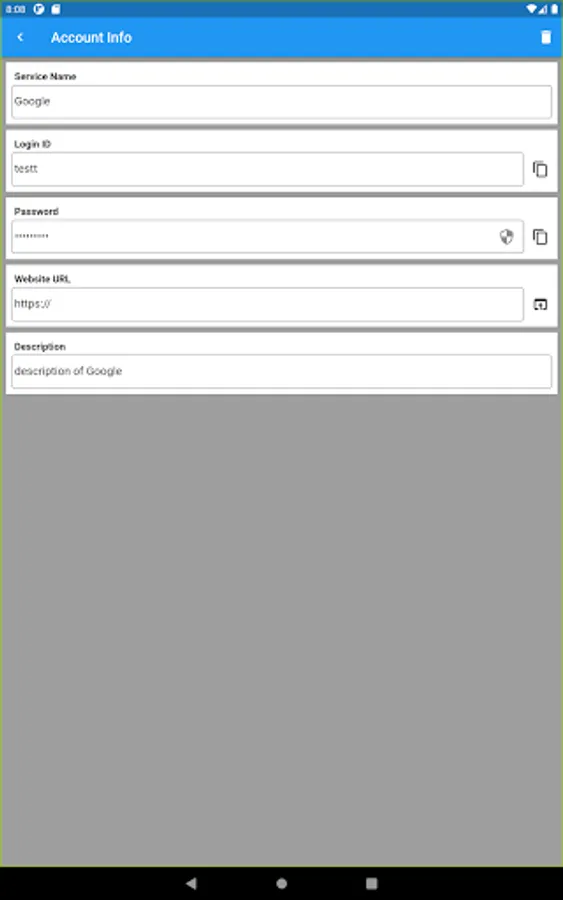 This app was created to keep your passwords together securely and easily.