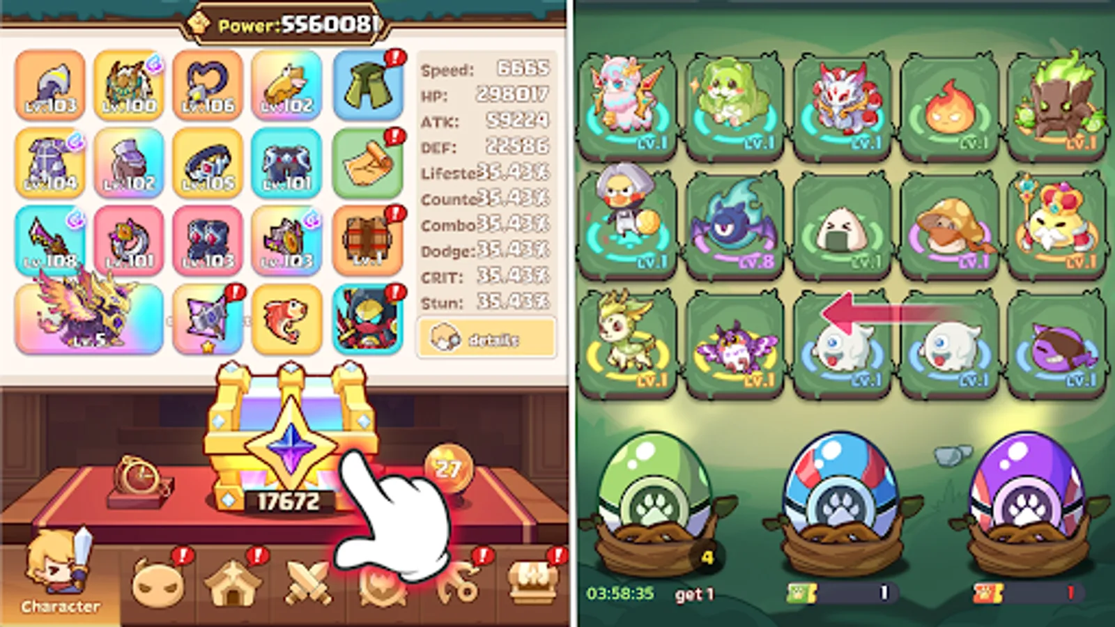 🔥 Nowadays, chest-opening mechanics are present in almost every game. Compared to exhilarating battles, many players are more enthusiastic about the opening process, which provides thrilling randomness—a moment of anticipation. Some surprises exceed expectations, while others may disappoint. Regardless of equipment quality, in this game, you will experience the purest joy of opening chests! Come and collect advanced equipment, upgrade your knight, defeat monsters, climb the ladder, challenge other players, and stand out in the RPG community with your unique style and power!