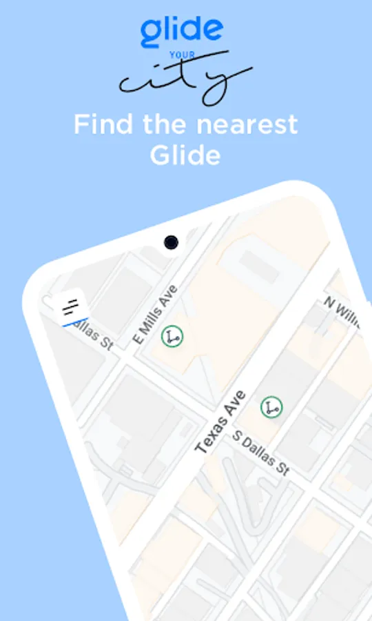 Glide puts your city at your fingertips with fast, fun, dockless scooters that will get you from A to B without the hassle. Had to park far from your destination? Ride a Glide and turn an inconvenience to a good time. Late for class? Grab a Glide and get there with time to spare. Your favorite coffee shop is too far to walk on your break or in-between classes? Glide over and back without breaking a sweat.