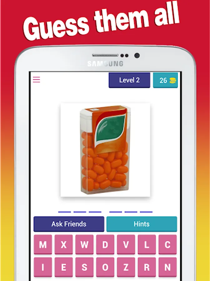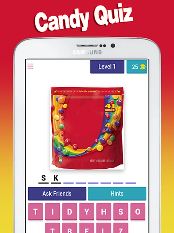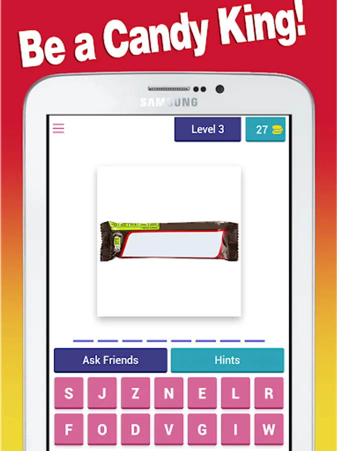 Candy Quiz shows you known candies, bubble gums, chocolates, potato chips, mints and other awesome products from the candy store or supermarket. Your job is to find out what the name of the candy is, cause we`ve gone ahead and removed it.