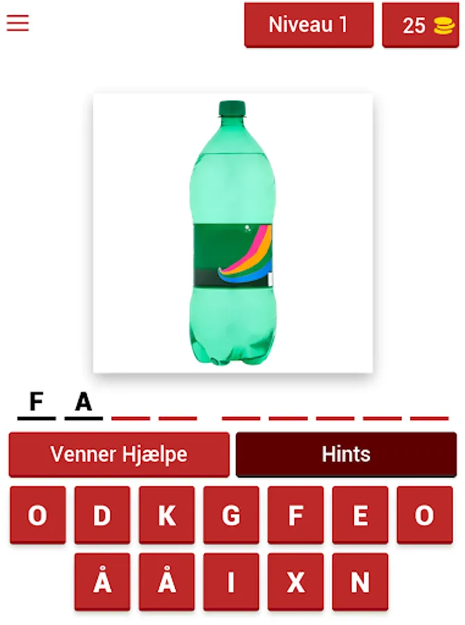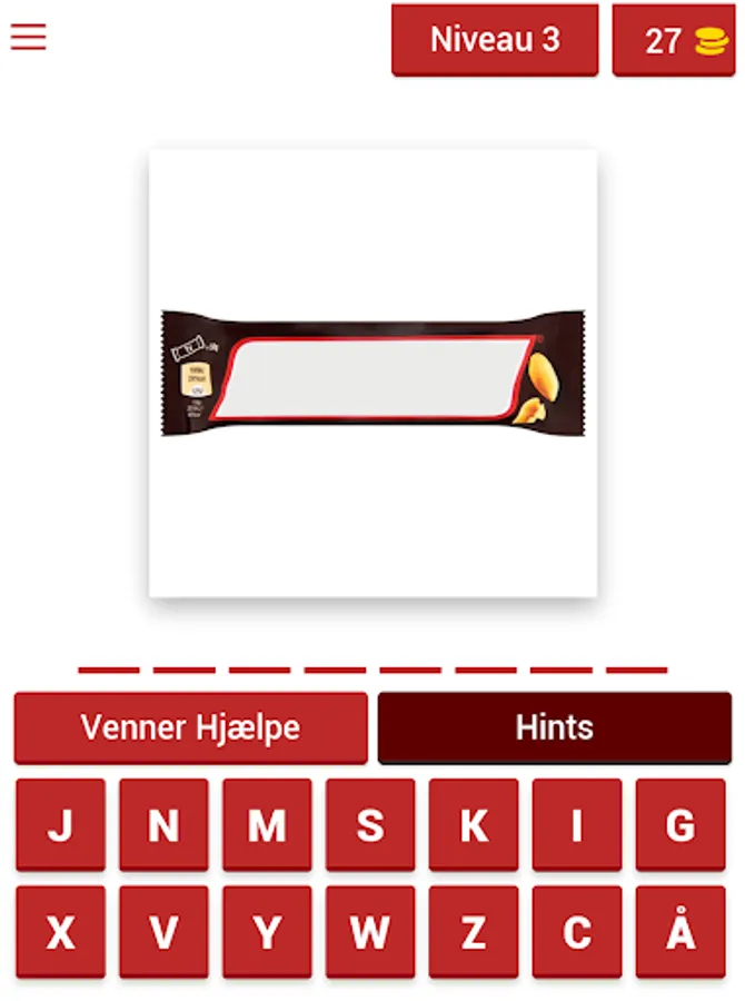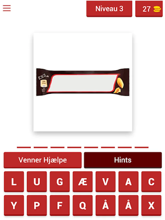 We have included all kinds of grocery items, such as sweets, snacks, drinks, canned food, meat, fruit and everything else you can expect to find in a Danish grocery store. How many of them do you really know? If you're the one in the family who buys, you might have an advantage, but some of these grocery items should be familiar to everyone, as we have tons of products that are known around the world, as well as many items that are made in Denmark. Some will be very hard to guess, but when you collect enough coins during the game, you can uncover some letters or remove some of the wrong ones to make it a little easier.