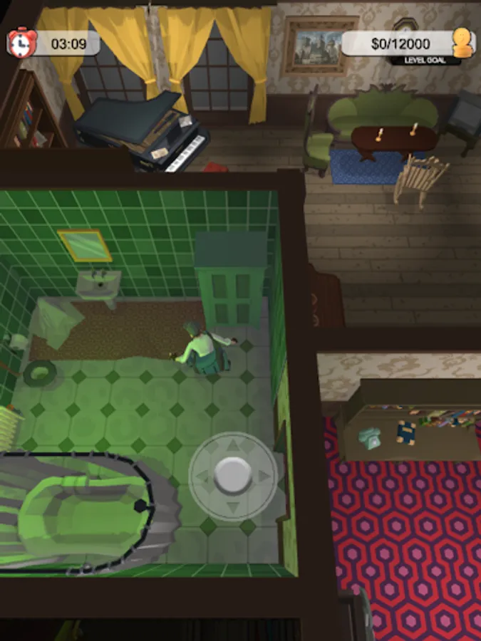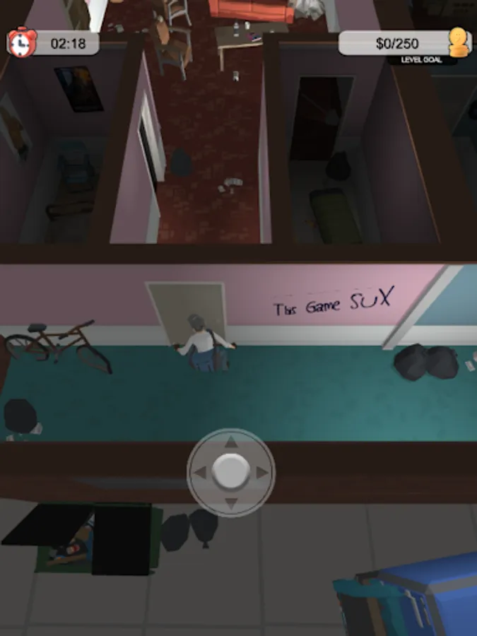 You start off in a basement of a building, and work your way up to the top floor, one floor at a time. Luckliy for you the whole building has been evacuated due to a possible rat infestation, so you`re basically all alone in there. Still, you have to clear each floor within a certain amount of time, and get inside that elevator to move on. The higher up you go, the bigger the rewards are.