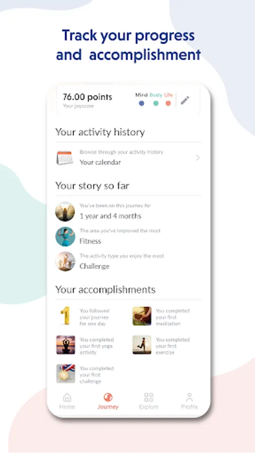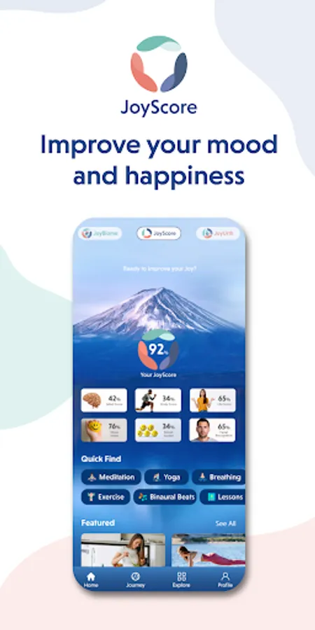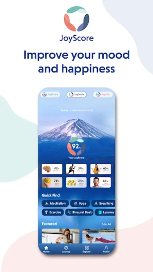We believe that everyone deserves a life filled with happiness. That’s why we created JoyScore. We designed this self-care app to measure and improve your mood and overall happiness through personalized activities and exercises that make you feel better in minutes. It’s the perfect app to begin your personal growth journey.