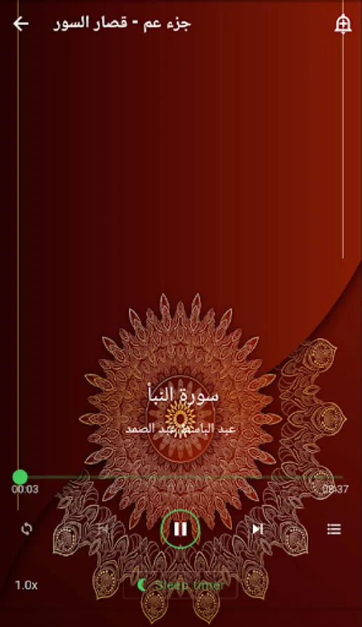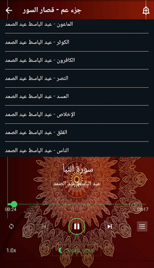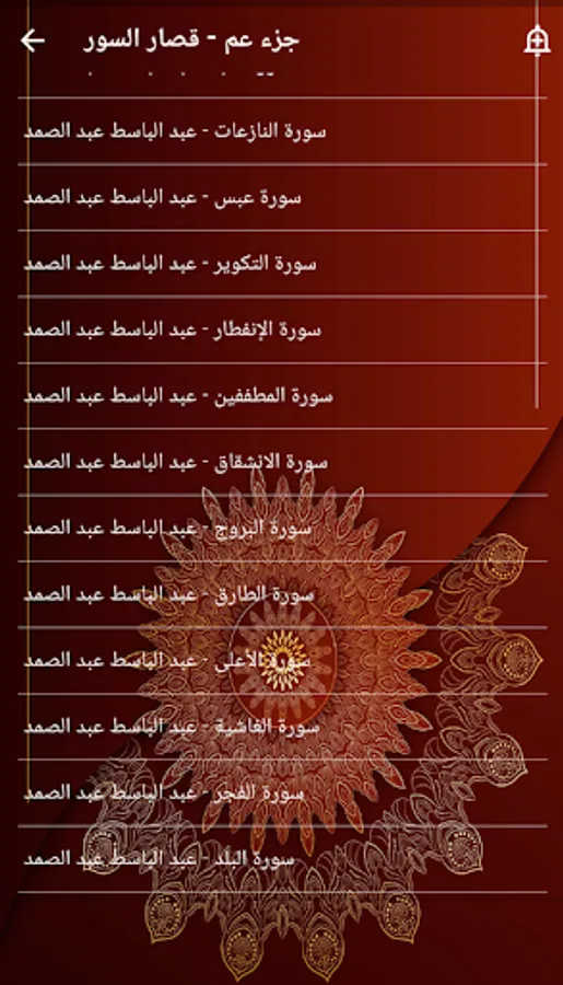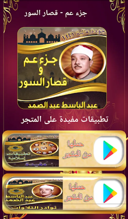 Juz Amma with short chapters by Sheikh Abd al-Basit Abd al-Samad, and it is one of the distinguished applications