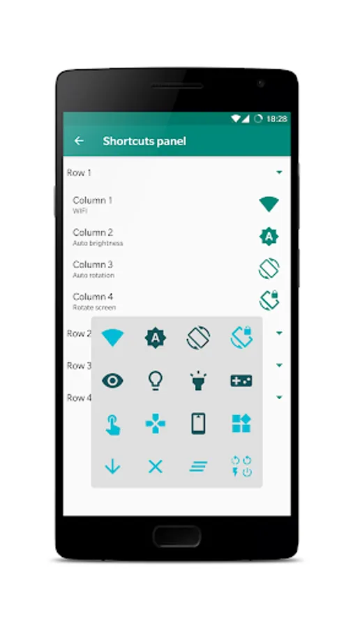 - Settings: auto brightness, rotation, wifi, mobile data...