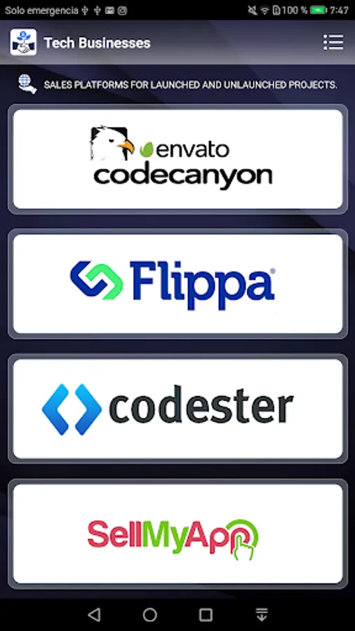 We are the first and only PlayStore application dedicated to the purchase and sale of businesses, companies and technological projects.