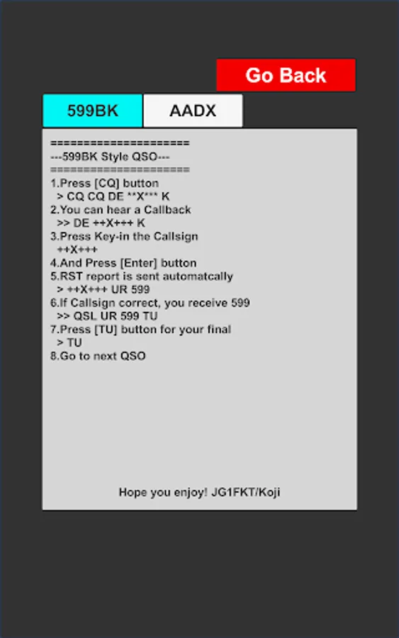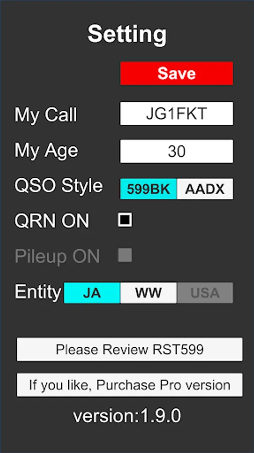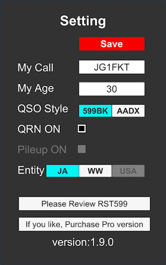 In order to reproduce a realistic QSO environment, the generated call sign, signal level, CW speed, etc. will differ for each QSO.