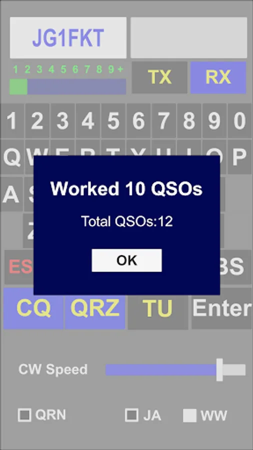 In order to reproduce a realistic QSO environment, the generated call sign, signal level, CW speed, etc. will differ for each QSO.