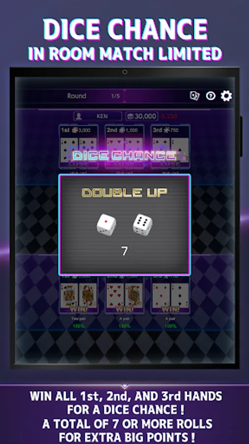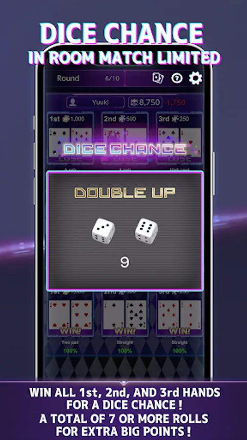 すべてのハンドで勝利すると、2つのサイコロを振ることができます。