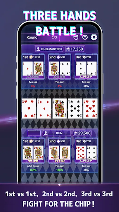 SIX POKER とは、ヘッズアップ(1対1)で戦う特殊ルールのポーカーゲームです。