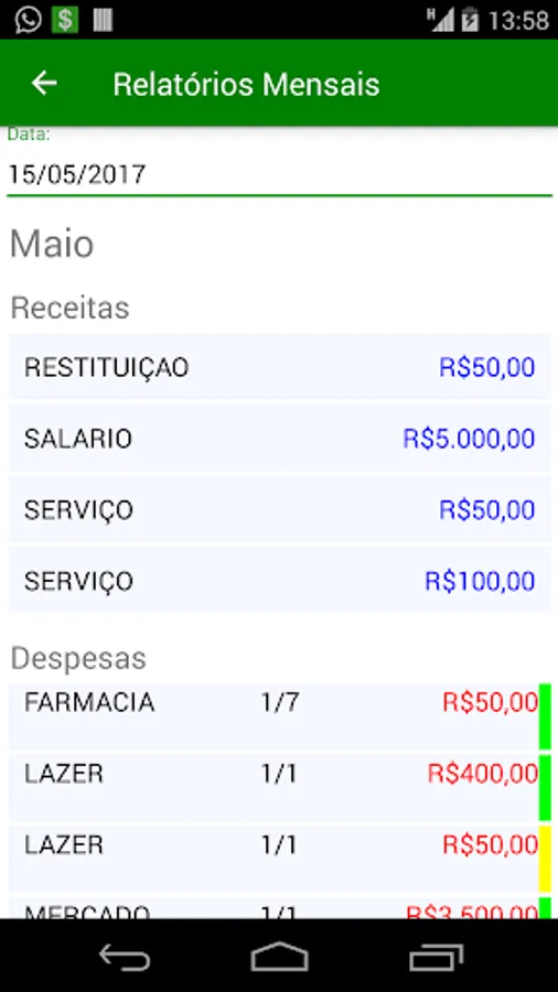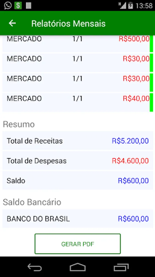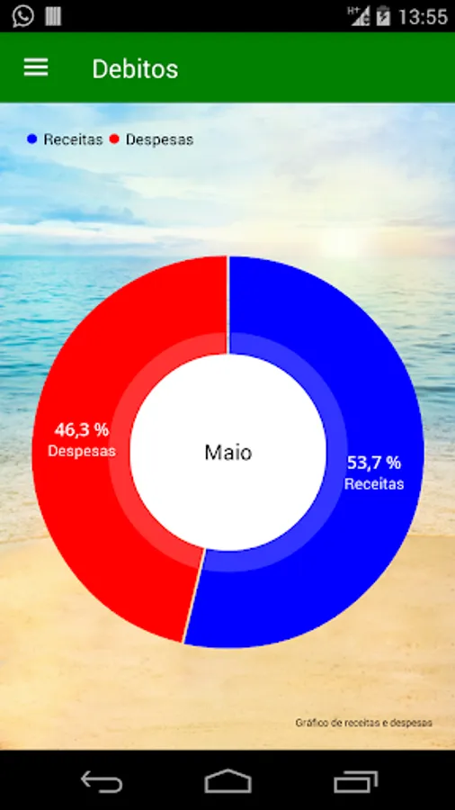 The Debt was developed to streamline the lives of those who do not want to spend much time with complex financial managers, the focus of their work is on simplicity, manage accounts has never been easier. For those who are used to write down your expenses and revenues in a notebook, spreadsheet, checking how many plots are still missing to complete and close the end of the month all days, the $ Debit want to make your life easier. The Debt controls for you your inputs, outputs, generates reports, and demonstrates graphically their spending during the year.