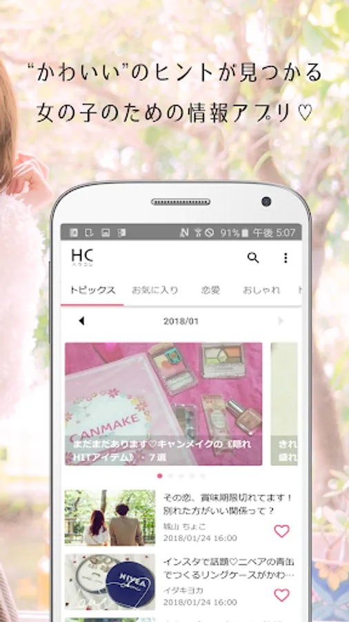 ファッション、ヘア、コスメなどの⼥子力アップ情報やSNSで話題の最新トレンド、かわいいスポット紹介に、彼にかわいいと思わせる恋愛Tipsなど、「自分磨き」に役立つ情報がたっぷり!「#かわいくなりたい」「#オシャレになりたい」「#キレイになりたい」が叶います。