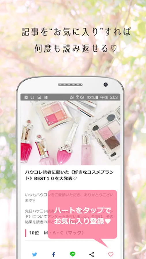 「後でしっかり読みたい!」という記事は、ハートをタップするだけでカンタンお気に入り登録。