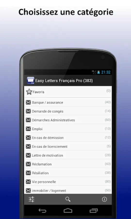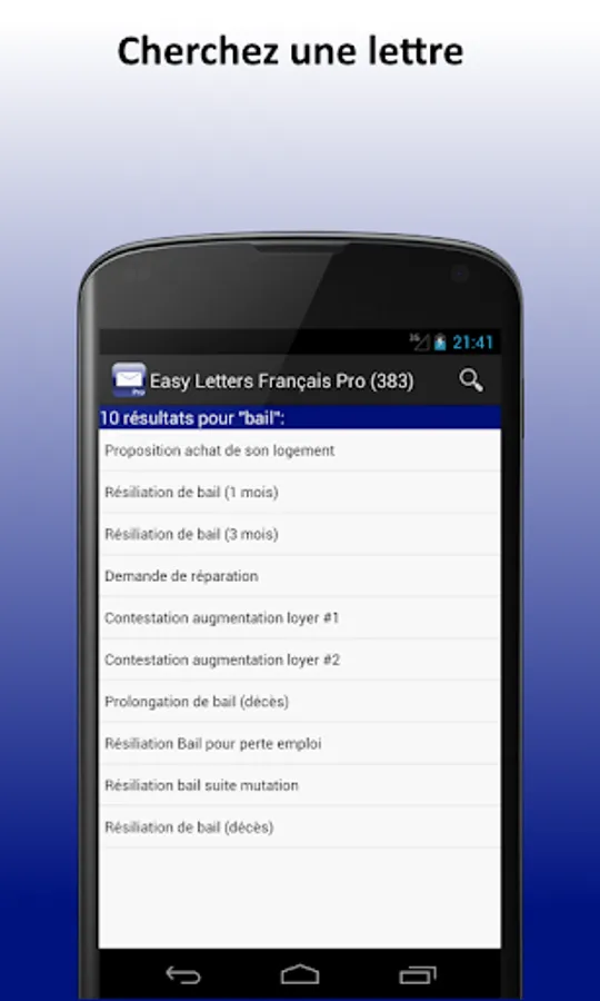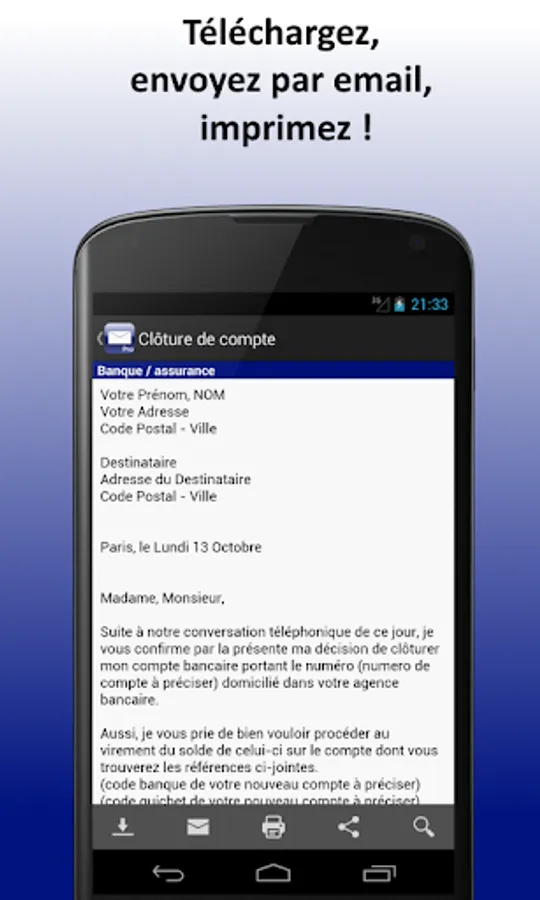 To sum up, with Easy Letters French , you can write, upload, email, share and print letters!