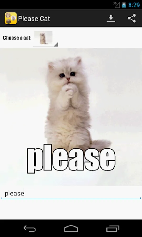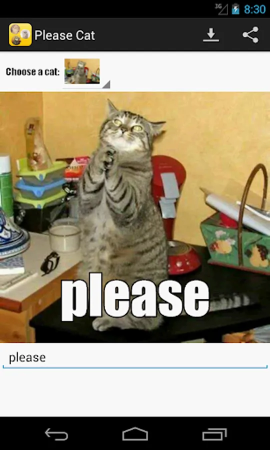 Please Cat is a simple application that will allow you to write a message with a cat picture.