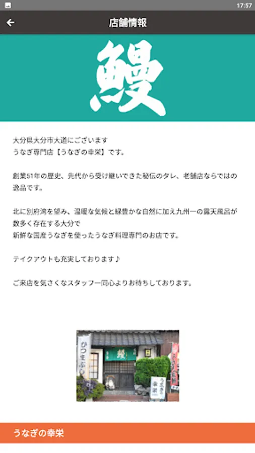 This is a restaurant specializing in eel dishes [Unagi no Kouei].