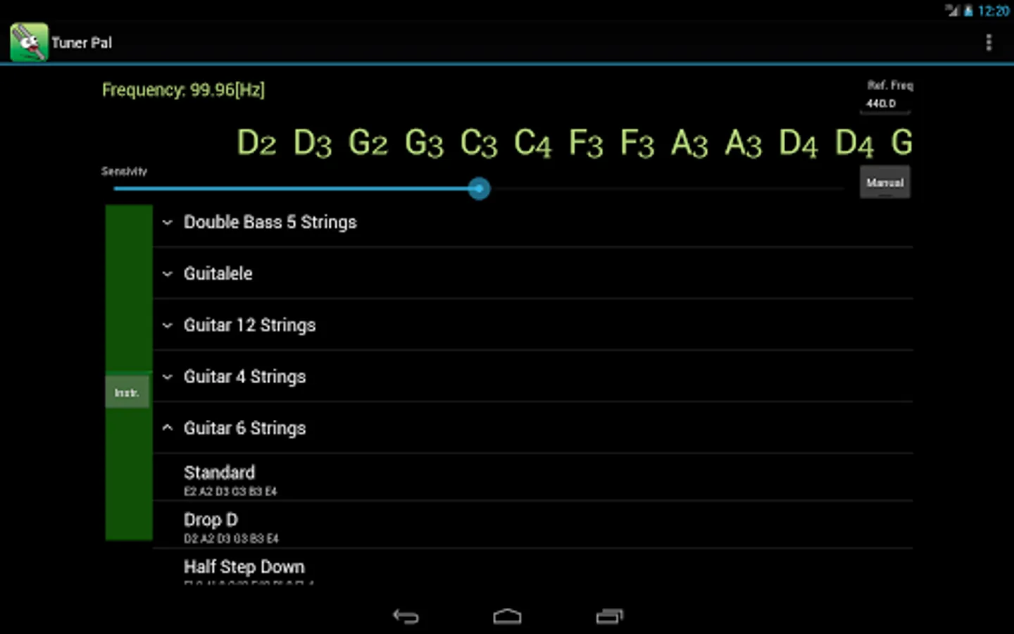 You can also ease your tuning by choosing your instrument in the list, display all Tones or only the major Tones, which suits any instrument.