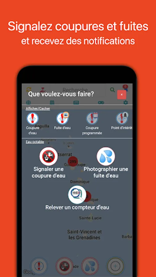 Report leaks and cuts where you are and receive advance notifications for areas where a work schedule is communicated.