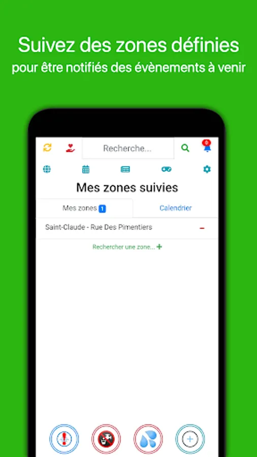 You can also define a set of zones for which you want to be notified of reported events.