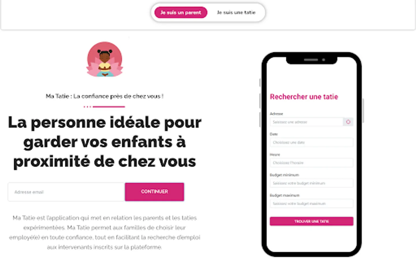 Ma Tatie is the application that connects parents and experienced aunts. Ma Tatie allows families to choose their employee with confidence, while facilitating the job search for workers registered on the platform.