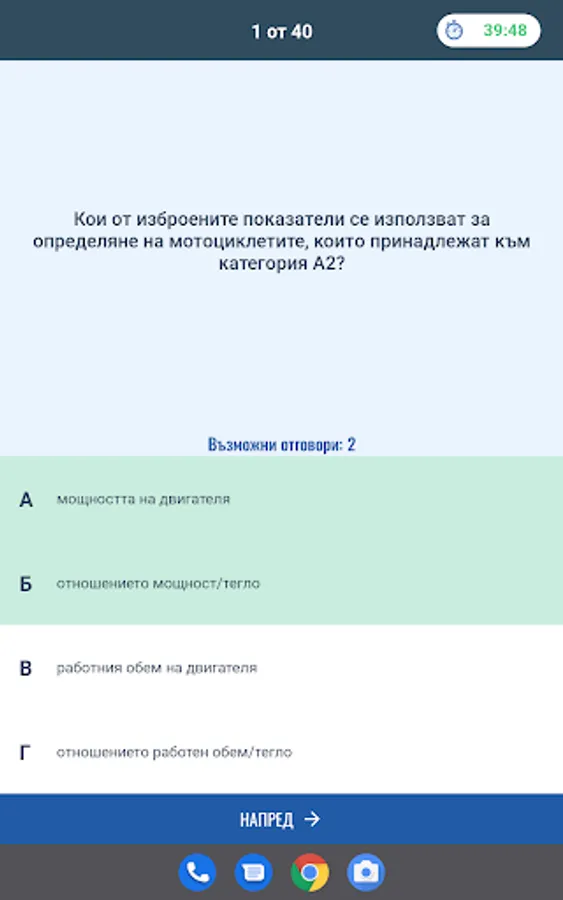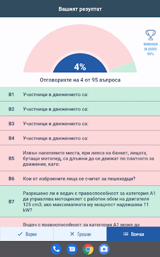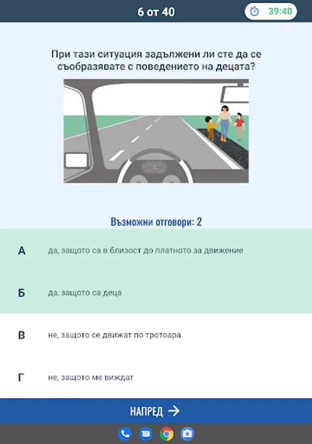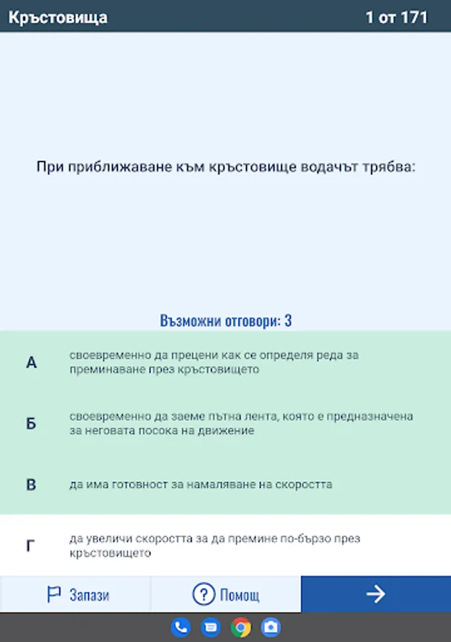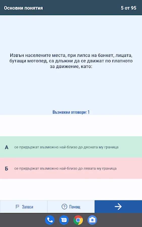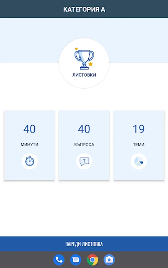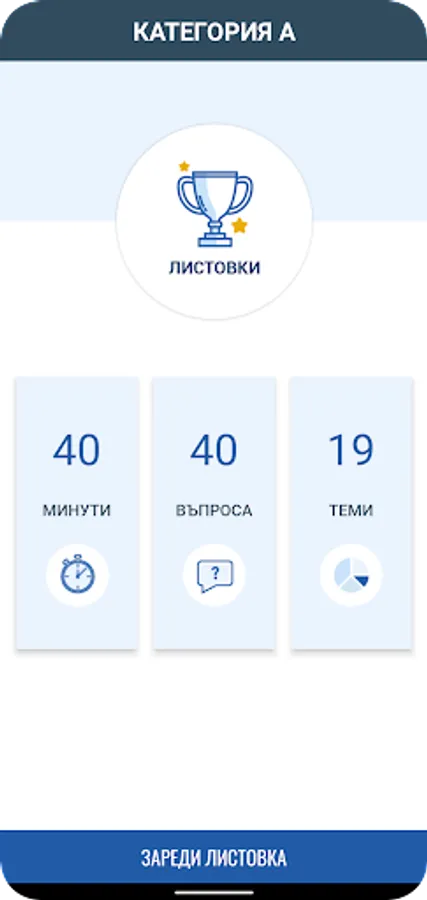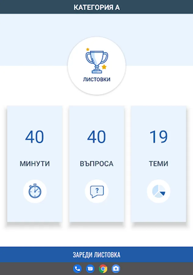 Режим "Листовки" генерира произволна листовка с определен брой въпроси и време според категорията МПС.