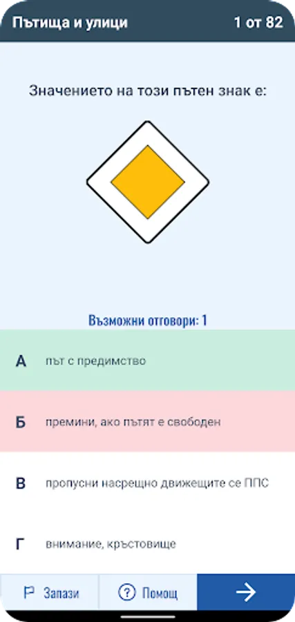 Режим "Пътни знаци" ще ви помогне да научите пътната сигнализация и ще можете да се упражнявате с помощта на богата база пътни ситуации.