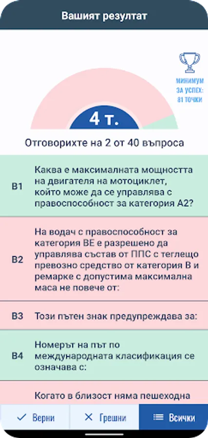 В края на всеки тест ще имате възможност да видите вашия резултат.