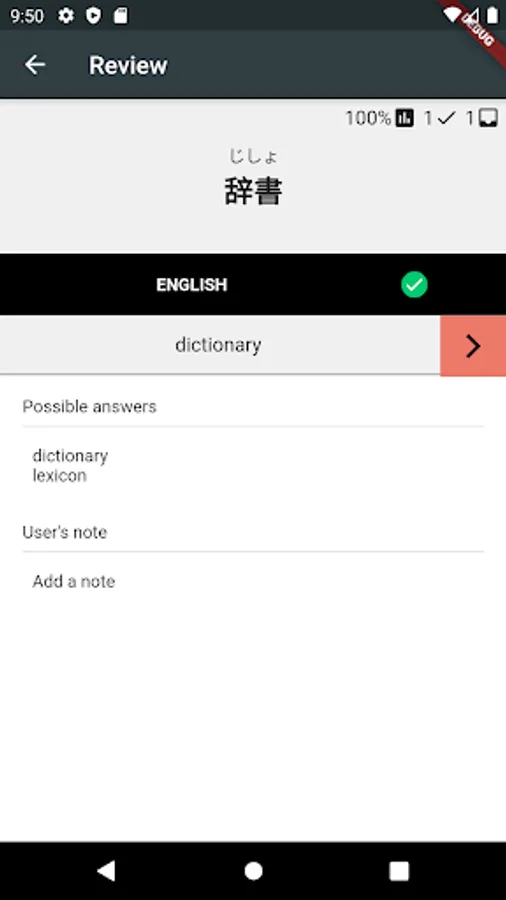Have you ever encounter a word you didn't know while reading, searched its meaning, made sure you will remember it by repeating it three times aloud and forgot it only a few hours later ? Then Benkyou is here to help you get through this. Benkyou uses the marvellous Jisho website to provide you translations to words and creates a review schedule to optimise your retention.